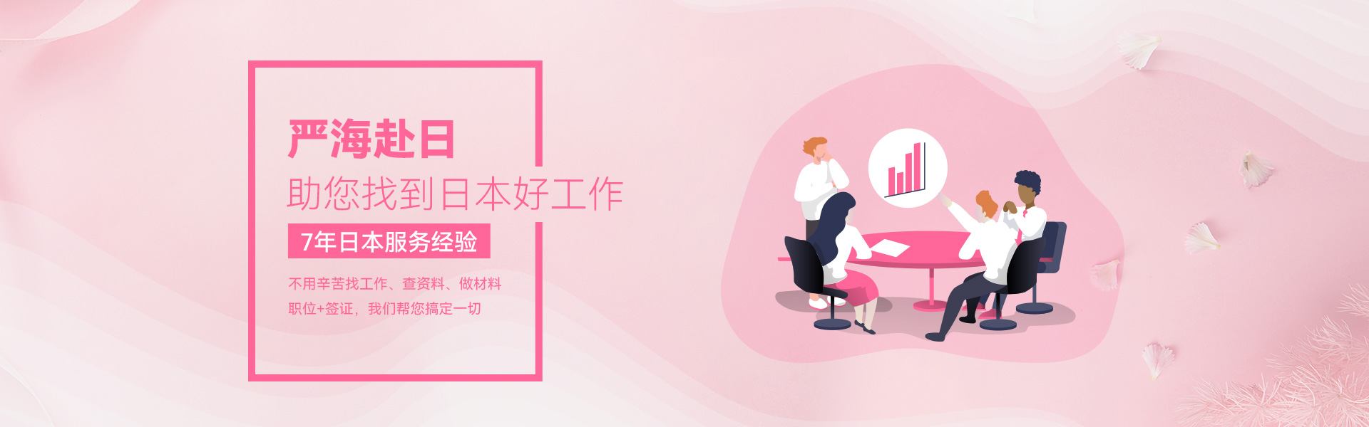 嚴海赴日(workinjapan.cn)是專業的赴日工作服務平臺,是大連嚴海人力資源有限公司旗下品牌。主要提供日本就職(工作簽)/日本留學(半工半讀),等最新工作信息和資訊,為想赴日工作的小伙伴們提供專業的、一對一的咨詢,為您職業生涯規劃、永居辦理、在日期間換職、轉換簽證等方面提供支援。